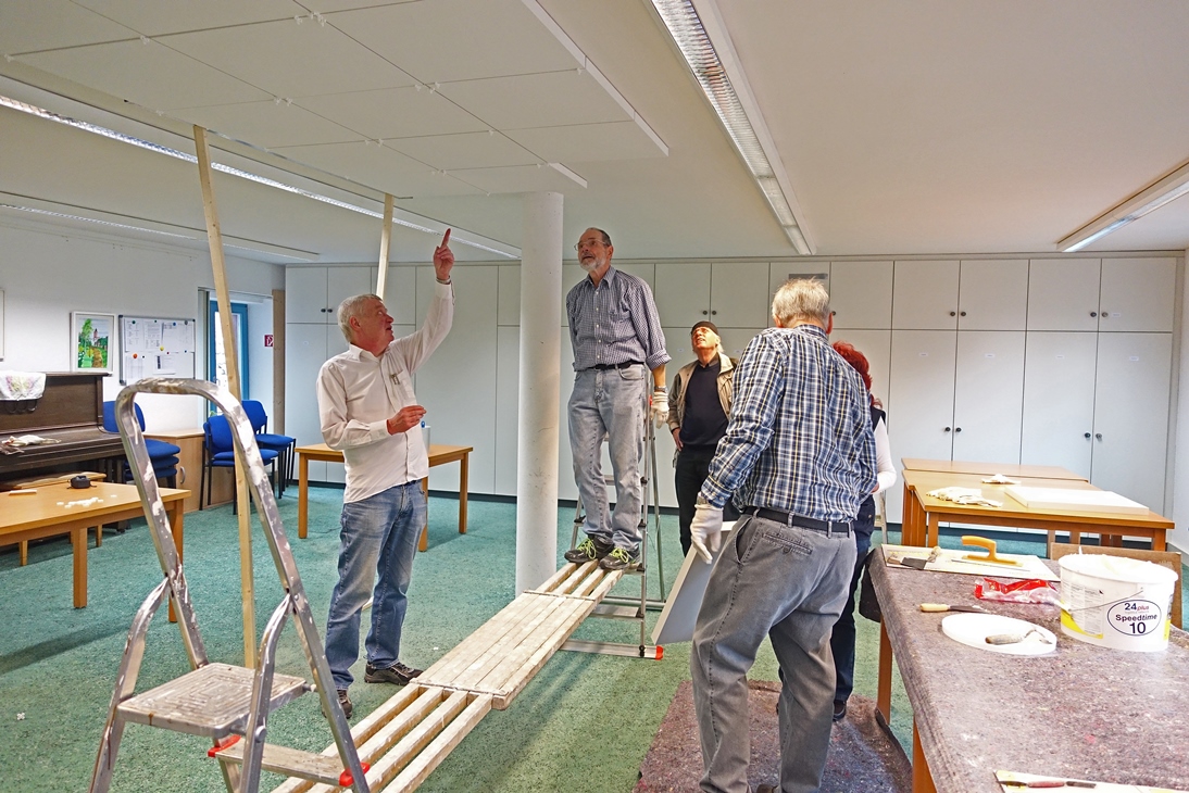 Am 22./24.10.2015 habe wir die Akustikdecke eingebaut. Dank an die Helfer!